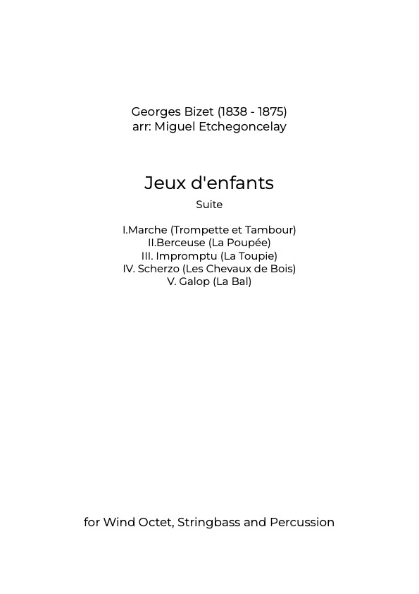 Georges Bizet (1838 – 1875) Suite for Wind Octet, Stringbass and Percussion arr: Miguel Etchegoncelay Grade 5, 12 minutes