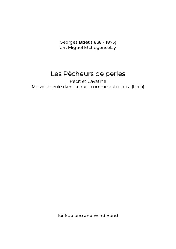 Georges Bizet (1838 – 1875) Récit et Cavatine for Soprano and Wind Band transc: Miguel Etchegoncelay Grade 4, 5 minutes