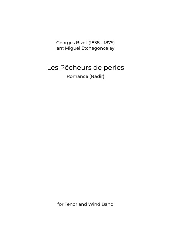 Georges Bizet (1838 – 1875) Romance de Nadir for Tenor and Wind Band transc: Miguel Etchegoncelay Grade 4, 3 minutes