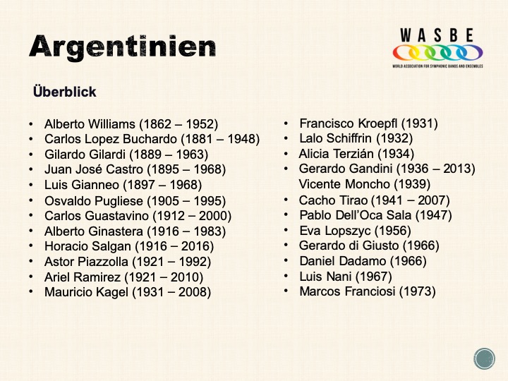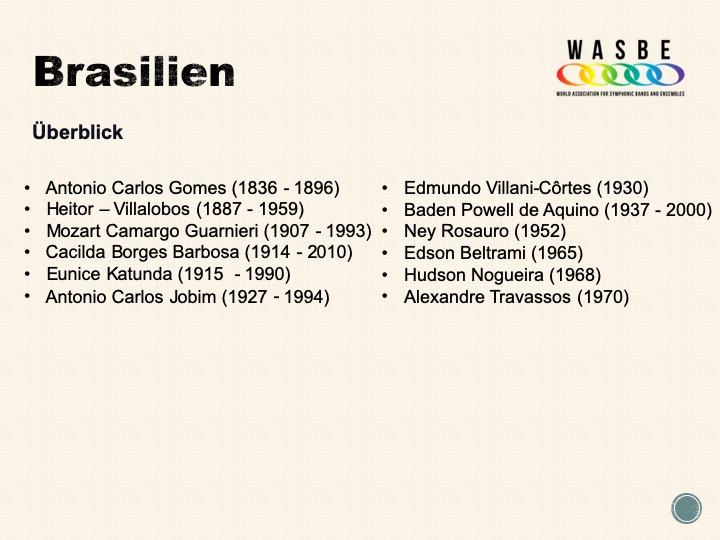 Last January, I participated on behalf of WASBE (World Association for Symphonic Bands and Ensembles) in the 2nd edition of the Internationaler Blasmusik Kongress (IBK) held in the city of Neu-Ulm, Germany (See link below). On this occasion I presented Wind Ensemble literature from South-America. I thought that a good presentation should not only feature the music being composed today in that region of the world, but also to revisit the most important works in the literature. Most of them are classics of the repertoire, like Villalobos, Revueltas or Brouwer, but fairly unknown to world of wind music here in Europe. You can follow the presentation here below: